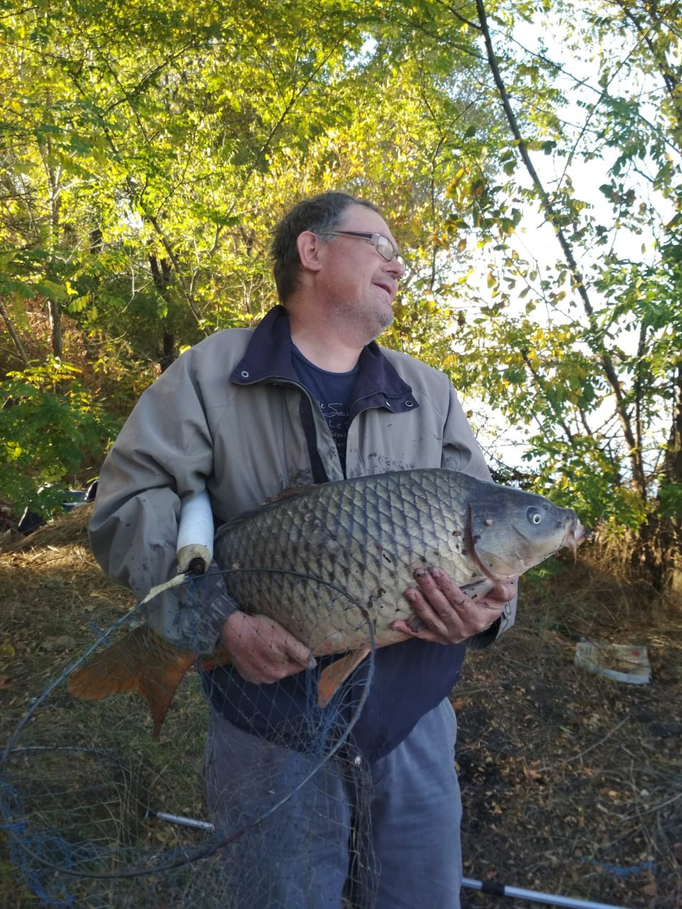 “Прекрасна осіння погода перед похолоданням та дощами. І ось він бонус! Виважували втрьох, використовуючи два підсаки, четвертий знімав відео на телефон, як виявилося – від хвилювання натиснув не на ту кнопку… Загалом: сазан був спійманий, один підсак порваний, адреналін у всіх!” – поділився уловом рибалка.