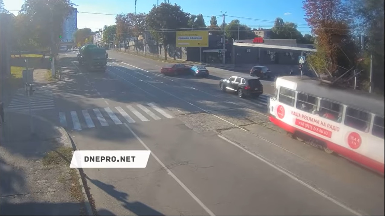Аварія на трамвайних коліях сталася у Кам’янському вдень 26 вересня та потрапила на камери спостереження компанії Дніпронет.