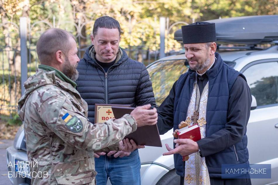 Міський голова Андрій Білоусов разом із настоятелем Кам’янської Парафії Преображення Господнього УГКЦ отцем Ігорем Пагуличем передали автівку нашим захисникам, які виконують бойові завдання на сході України.