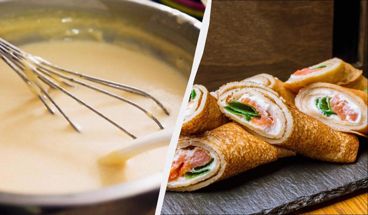 У цьому рецепті використовуються тільки два основні інгредієнти: яйця і м’який сир. Також підготуйте соняшникову олію, щоб посмажити млинці, і блендер для збивання тіста.
