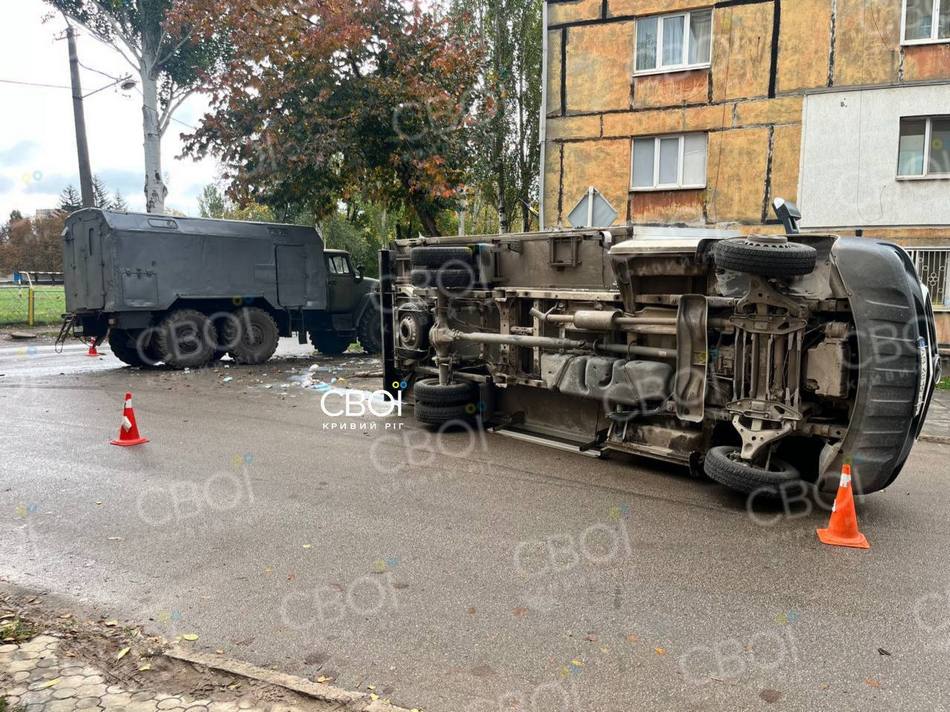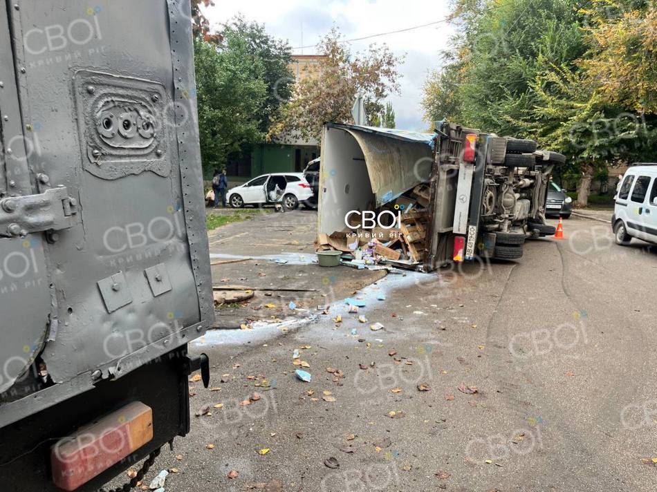 У суботу, 11 жовтня, у Кривому Розі на перехресті вулиць Військового тилу і Кропивницького автомобіль “Урал” перекинув вантажівку з молоком.