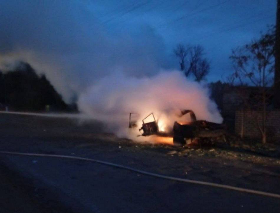 Безпілотником росіяни вгатили також по Покровській громаді Синельниківщини. Вогнем охопило авто. Минулося без жертв.