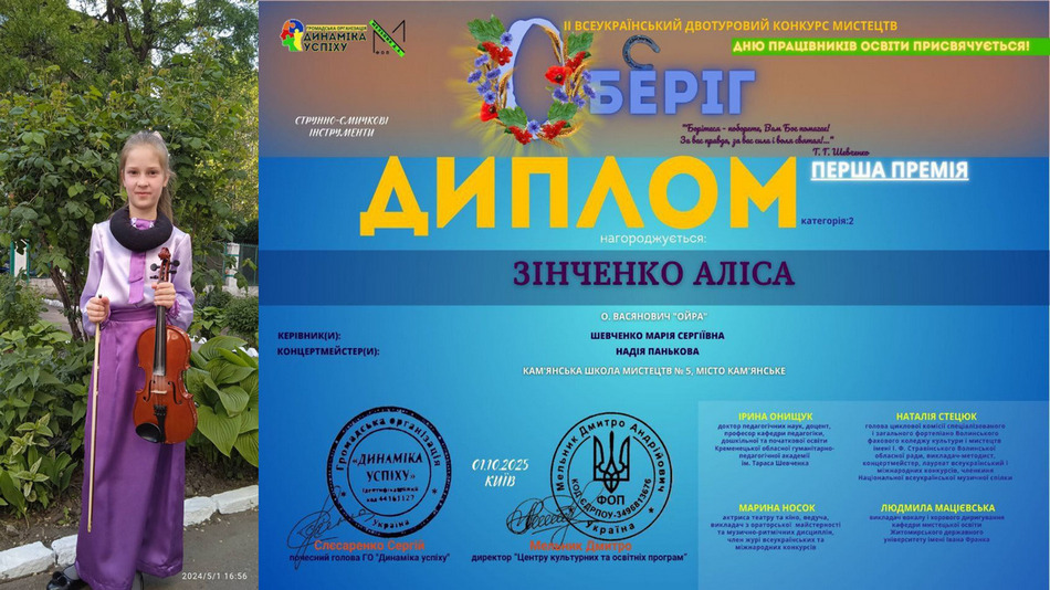 Фінал змагання пройшов 1 жовтня у столиці України – Києві. Педагог Марія Шевченко та акомпаніатор Надія Панькова удостоєні подяки журі конкурсу за визначні професійні зусилля, продуктивну художню взаємодію та значний внесок у справу збереження та просування української культурної спадщини.