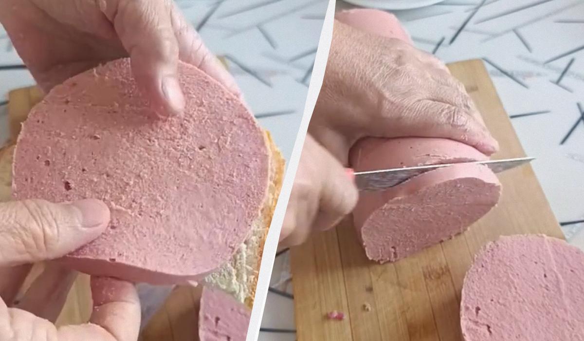 4. Прибрати заготовку в холодильник на 10 годин або на ніч. Вранці канцелярським ножем розрізати пляшку і подивитися, яка вийшла у вас домашня докторська ковбаса – рецепт, як бачите, дуже простий, але продукт виходить неймовірно смачним.