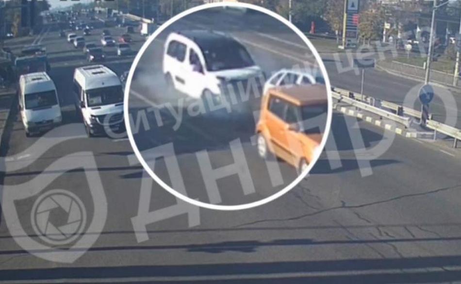 Як видно на відео, автомобілі рухалися по одній смузі. Раптово автомобіль Citroen почав диміти – ймовірно, водій не встиг загальмувати, і протаранив дві автівки, які рухалися попереду.