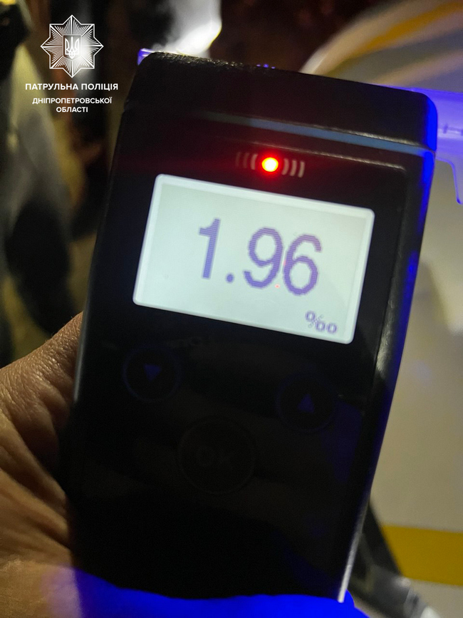 Зранку 24 жовтня у Новокодацькому районі патрульні зупинили за порушення ПДР водія автомобіля Renault. Чоловік також мав ознаки алкогольного сп’яніння. Він погодився пройти освідування на місці. Результат — 1,54 проміле алкоголю в його крові. На громадянина склали протокол за керування у стані сп’яніння та за те, що не мав при собі водійського.