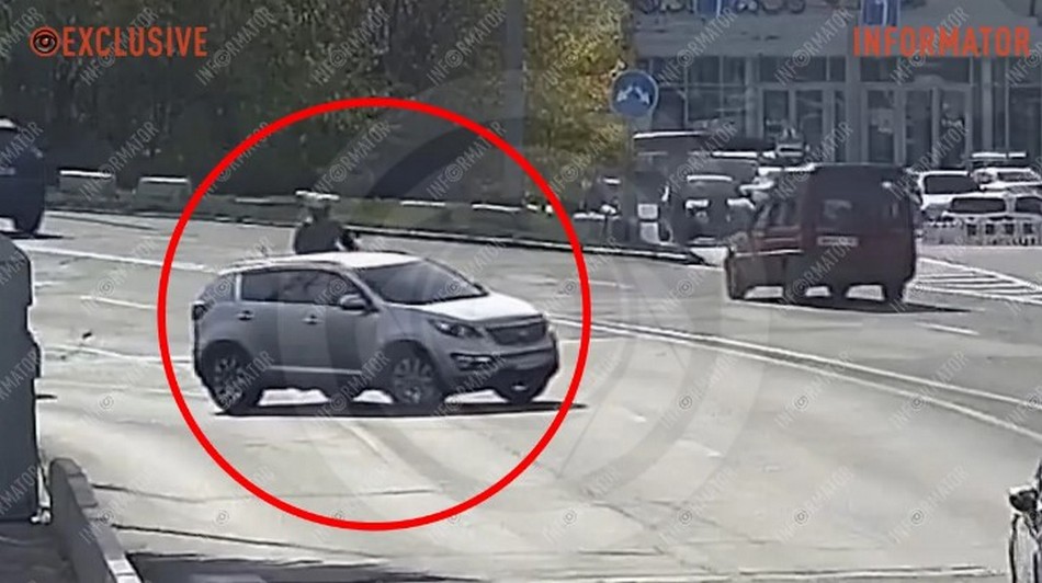 На кадрах видно, що мотоцикліст рухався в бік лівого берега. Він зіштовхнувся з автомобілем Kia, злетів з транспортного засобу та перекрутився у повітрі. Після цього водій на авто поїхав геть, а мотоцикліст лишився лежати на землі. Першу допомогу йому почали надавати інші водії. У якому стані постраждалий – наразі невідомо.