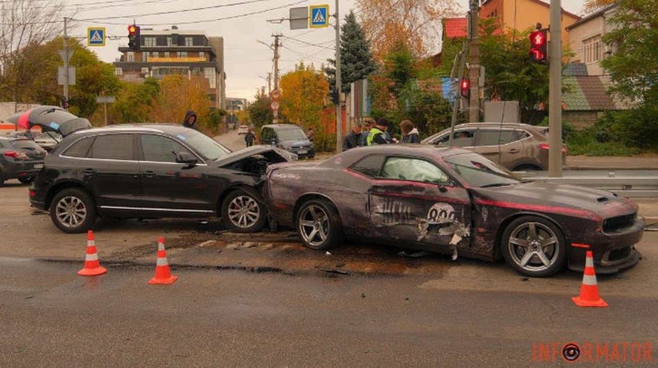 Як видно на відео, паркетник наздогнав автомобіль Dodge та влетів у стовп. В результаті зіткнення обидві автівки сильно понівечені.