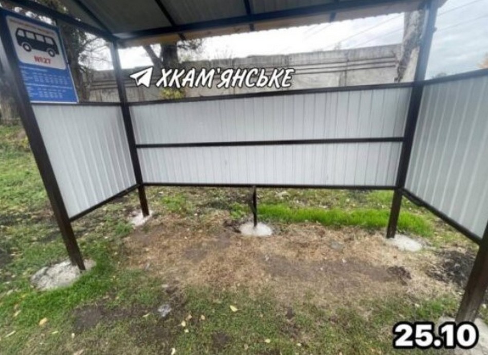 У селищі Будівельників у Кам’янському районі зняли лаву біля зупинного павільйону, встановленого у вересні на прохання місцевих мешканців.