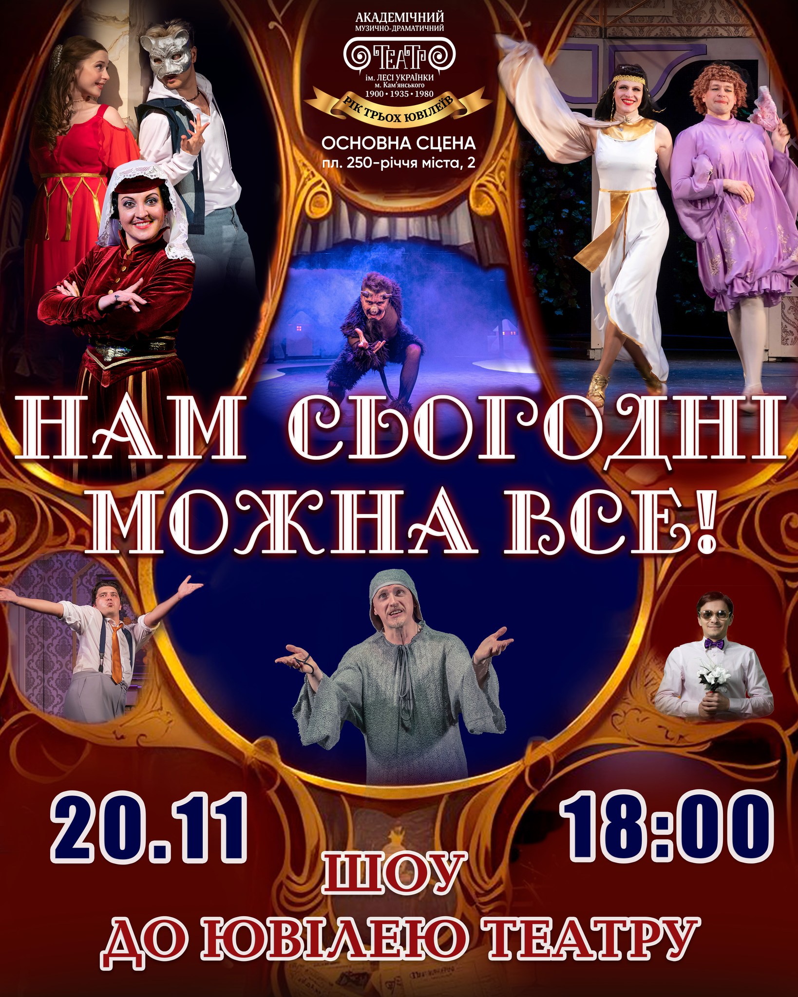 Бувають події, які трапляються раз у житті. Тож Театр ім. Лесі Українки 20 листопада о 18:00 презентує святкове шоу “Нам сьогодні можна все”, присвячене потрійному ювілею театру!