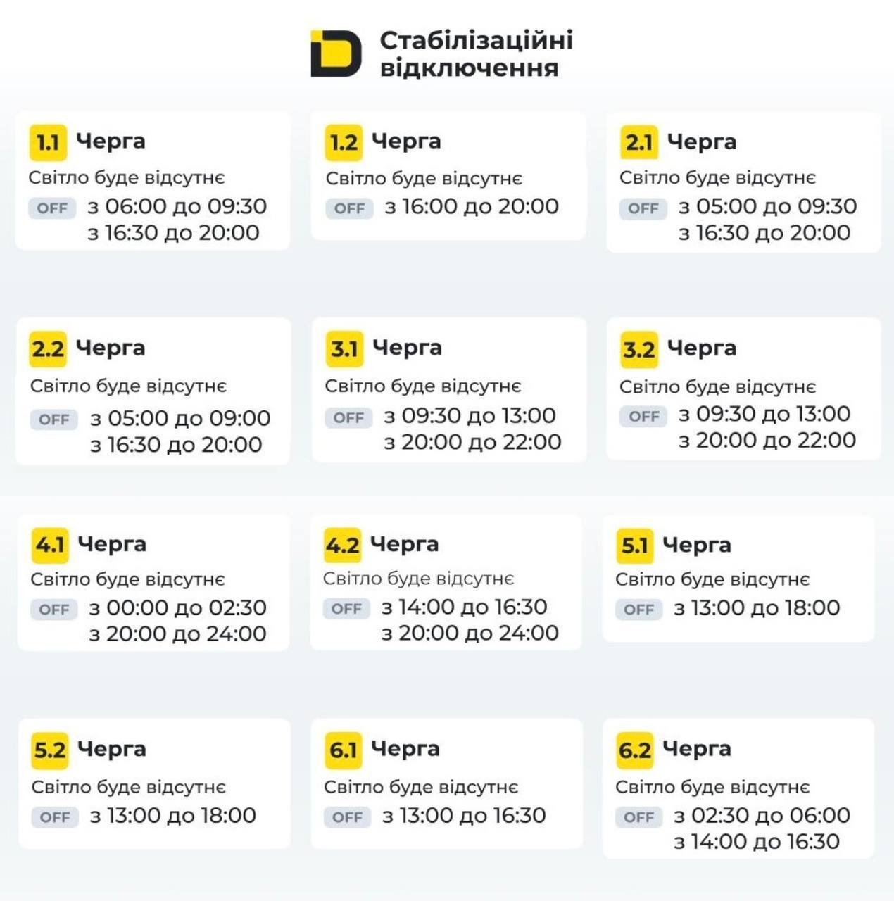 Суспільство Графік відключення світла у Кам’янському на сьогодні 31.10.2025 коментувати На Дніпропетровщині у п’ятницю, 31 жовтня з 00:00 до 24:00, за розпорядженням Укренерго, діятимуть стабілізаційні відключення електроенергії. Про це повідомили в ДТЕК Дніпровські електромережі. Кількість переглядів: 58 відключення світла Кам'янське