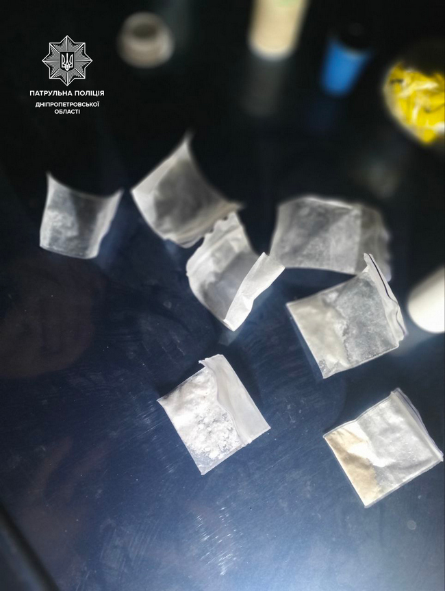 Водію провели поверхневу перевірку і виявили пакет і пластикові контейнери, в яких була речовина рослинного походження, схожа на наркотичну та 7 сліп-пакетів із речовиною кристалічного походження, схожою на наркотичну.