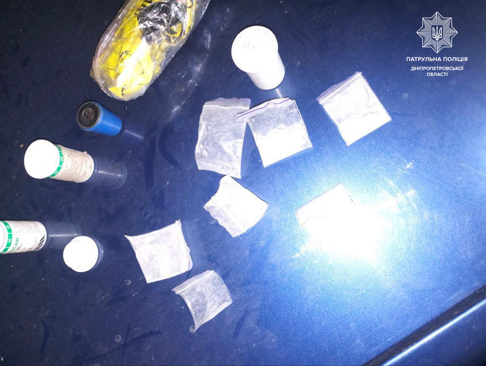 Водію провели поверхневу перевірку і виявили пакет і пластикові контейнери, в яких була речовина рослинного походження, схожа на наркотичну та 7 сліп-пакетів із речовиною кристалічного походження, схожою на наркотичну.