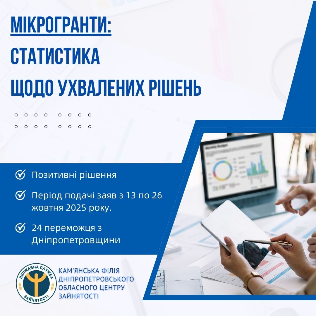 Визначено нових переможців урядової програми Власна справа /грант/, які подавали заяви на отримання мікрогрантів у період з 13 по 26 жовтня 2025 року.