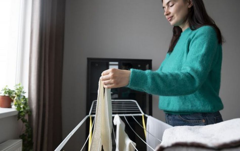 Найпоширеніша помилка – розвішувати білизну шарами на сушарці, економлячи місце.