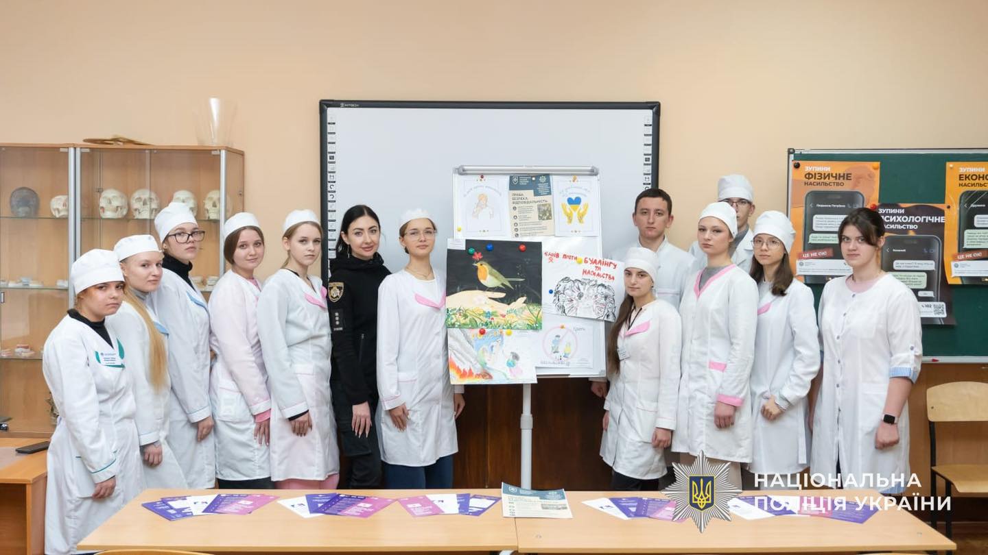 Заступник начальника сектору ювенальної превенції Любов Головій обговорила зі студентами медичного коледжу одну з найважливіших тем сьогодення – запобігання насильству. Зустріч відбулася в атмосфері довіри та відкритості, де кожен мав можливість поставити питання й отримати фахові відповіді.Поліцейська пояснила молоді, які форми насильства існують, як їх розпізнати та чому важливо не мовчати, коли стаєш свідком чи постраждалим. Особливу увагу приділила тому, куди можна звертатися по допомогу та як захистити себе і своїх близьких.