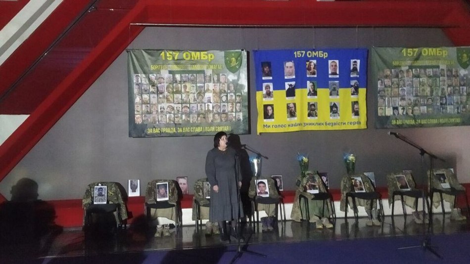 Директор музею історії Кам’янського Наталія Буланова звернулася до присутніх із пронизливими словами, пояснюючи символізм інсталяції: перед присутніми на стільцях були акуратно складені особисті речі захисників Кам’янського, що зникли безвісти.