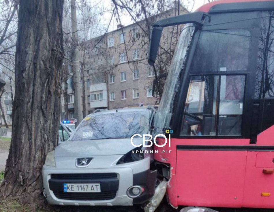 Вранці 7 грудня на перехресті вулиць Гурова та Комара (колишня Стрєльникова) у Кривому Розі дорогу не поділили автобус та автомобіль Peugeot, передає “Відомо” з посиланням на Телеграм канал “Свої — Кривий Ріг”.