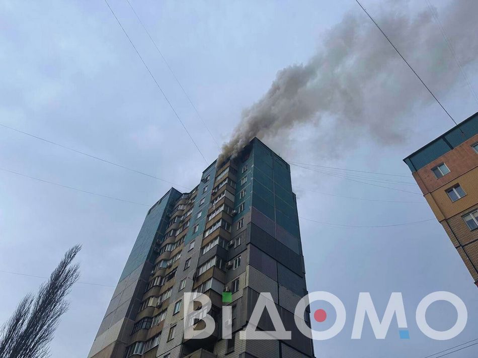 Полумʼя охопило повністю чотирикімнатну квартиру на 16-му поверсі, а клуби густого диму здійнялися вгору з усіх вікон.