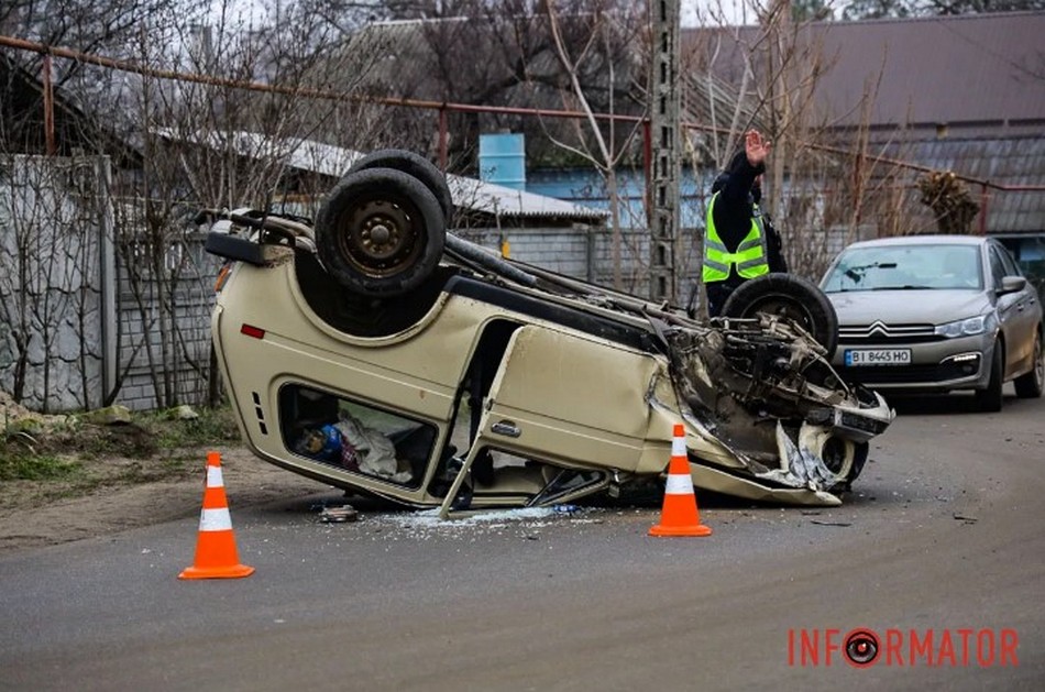 У Дніпрі Niva зіштовхнулась з Daewoo та перекинулась на дах: є постраждала
