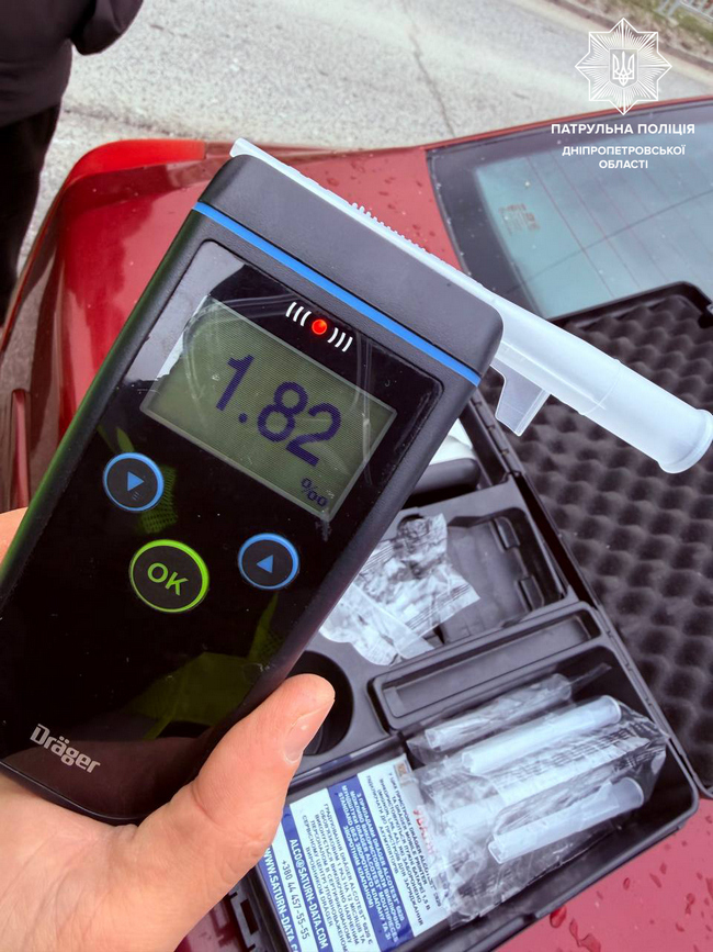 Під час спілкування з водієм Chevrolet інспектори помітили у нього ознаки алкогольного сп’яніння. Чоловік пройшов освідування у встановленому законом порядку — за допомогою Драгеру. Результат підтвердив, що кермувальник нетверезий — в його крові було 1,82 проміле алкоголю.