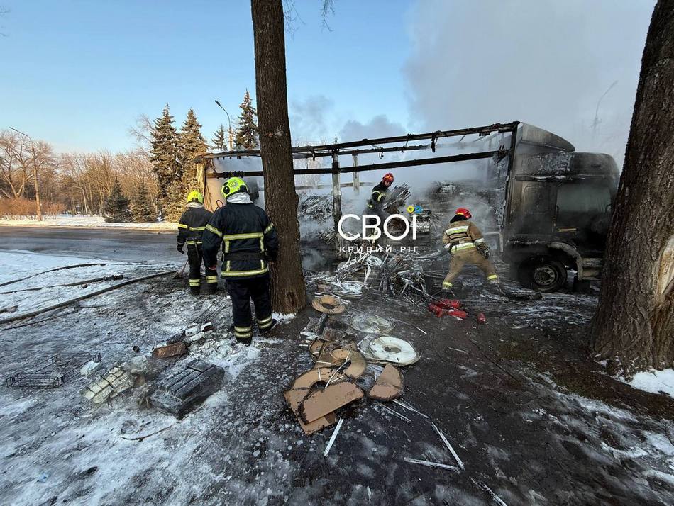 Рятувальники, які прибули на місце пожежі, загасили полумʼя, але воно вже встигло випалити фуру вщент, разом з майном всередині автомобіля.