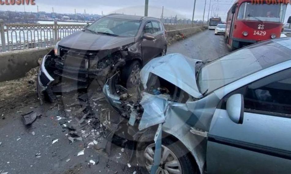 Попередньо, Hyundai рухався мостом по трамвайних коліях. Його «підрізала» інша автівка, через це водій авто не впорався з керуванням, вилетів на зустрічну смугу та врізався у Kia.