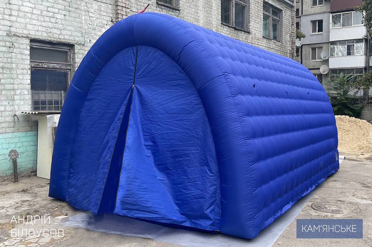 Намет буде використовуватися для прийому громадян та організації першочергової допомоги. Він термоізольований, конструкція дозволяє швидко встановлювати його у польових умовах.