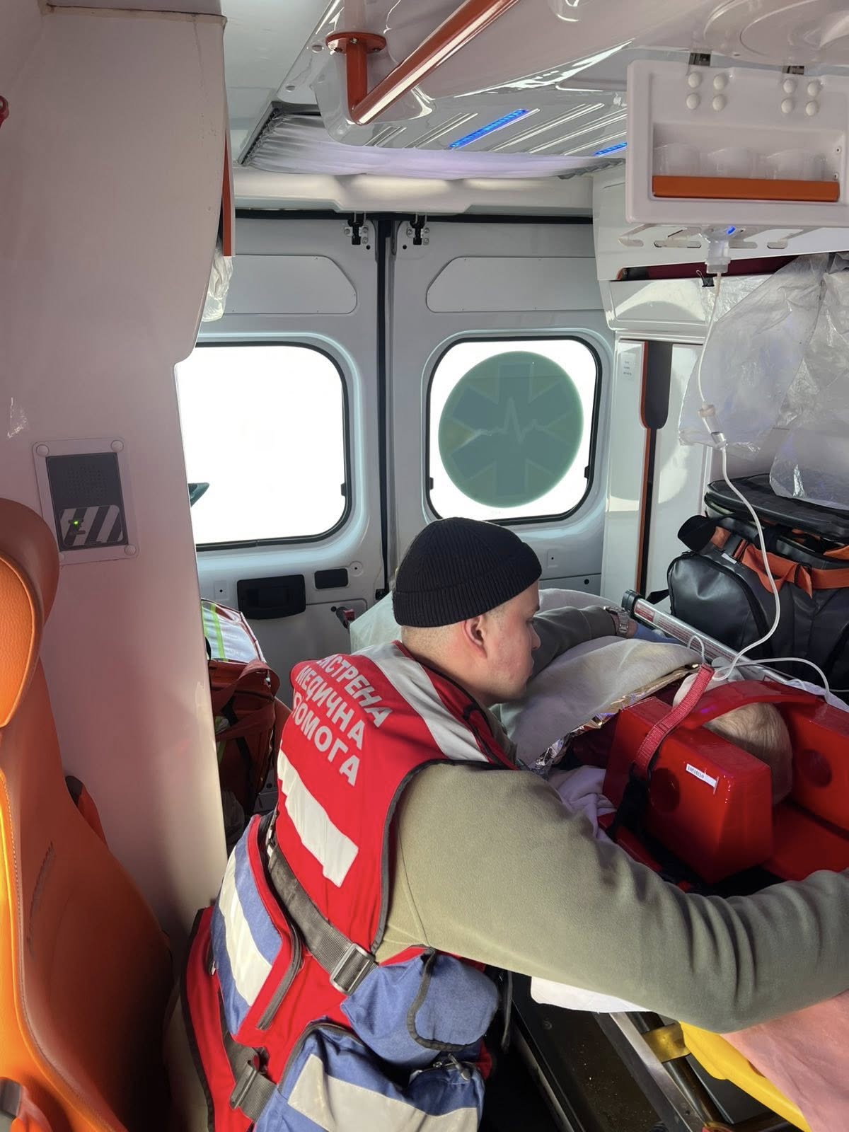 Після огляду і обстеження попередній діагноз: «Політравма. ЗЧМТ. Струс головного мозку. Забій грудного відділу хребта? Перелом правого стегна». Розпочато надання екстреної медичної допомоги в повному обсязі: зігрівання, внутрішньовенний доступ, знеболення, інфузія розчинів, шийний комір, транспортна іммобілізація кінцівки, транспортувальна дошка, подача зволоженого кисню і моніторинг стану під час транспортування. Госпіталізований в м. Дніпро КП “РМЦРЗ”ДОР”, – йдеться у повідомленні.