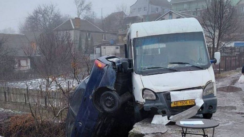 У суботу, 7 лютого, у Дніпрі у селищі Мирному сталася аварія за участі легкового автомобіля та мікроавтобуса, в результаті якої легковик опинився “у проваллі”.
