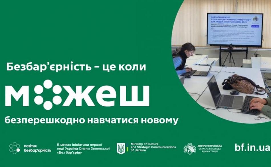 У Дніпропетровській області триває курс з цифрової грамотності для людей з порушеннями зору. Навчання відбувається в адаптованому форматі. Використовують екранні зчитувачі, допоміжні технології. Беруть до уваги індивідуальний темп опанування матеріалу кожного слухача.