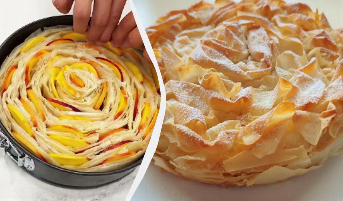 Якщо ви зважитеся спробувати спекти його одного разу, зрозумієте, що це найсмачніший яблучний пиріг, який ви коли-небудь їли в своєму житті. Головна особливість десерту в тому, що для нього необхідне тонке повітряне тісто філло, яке робиться з винного оцту, води, оливкової олії і борошна. У домашніх умовах його приготувати важко, для цього необхідна спеціальна техніка, яка є на виробництвах, тому краще купити вже готове тісто в супермаркеті. Далі вам залишиться лише зробити найсмачніший яблучний пиріг.