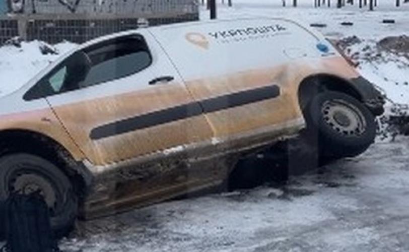 За попередньою інформацією, водій припаркувався біля відділення, але через слизьку дорогу автівка почала ковзати і обома правими колесами впала у яму «Теплоцентралі». Керманич автівки не постраждав