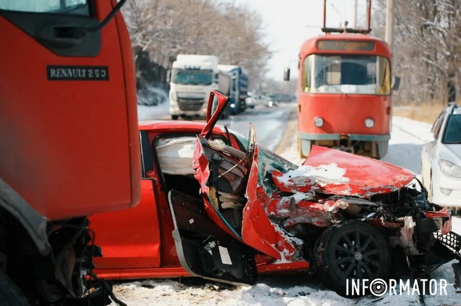 У суботу, 21 лютого, у Дніпрі на Західному шляху сталася серйозна аварія. Поблизу ДЗМО зіткнулись Volkswagen та вантажівка Renault. За попередньою інформацією від поліцейських, постраждала дитина. Її відвезли до лікарні.