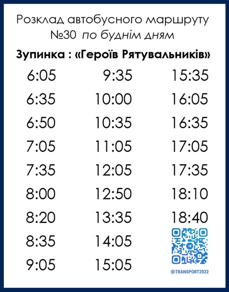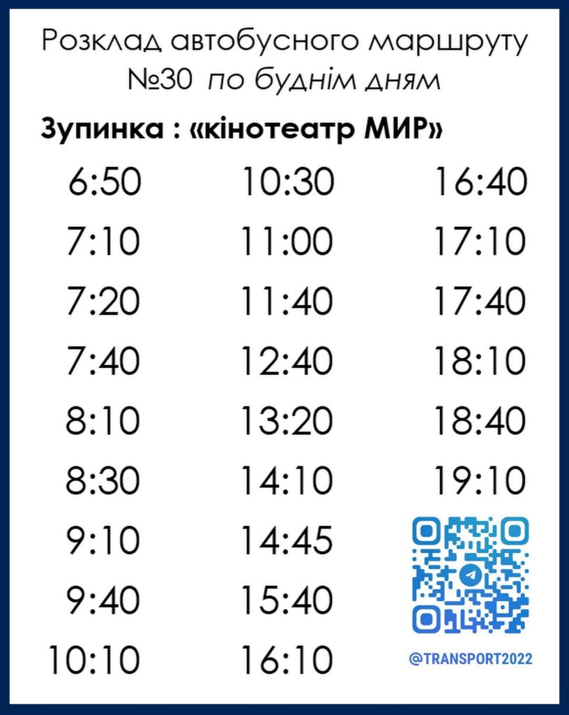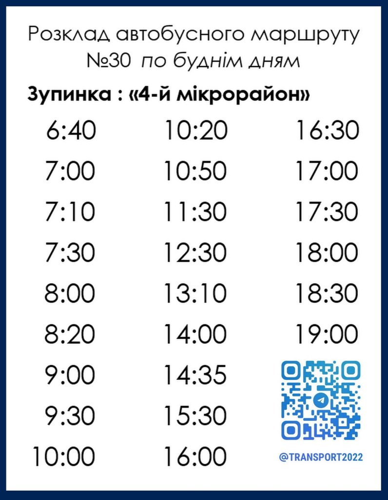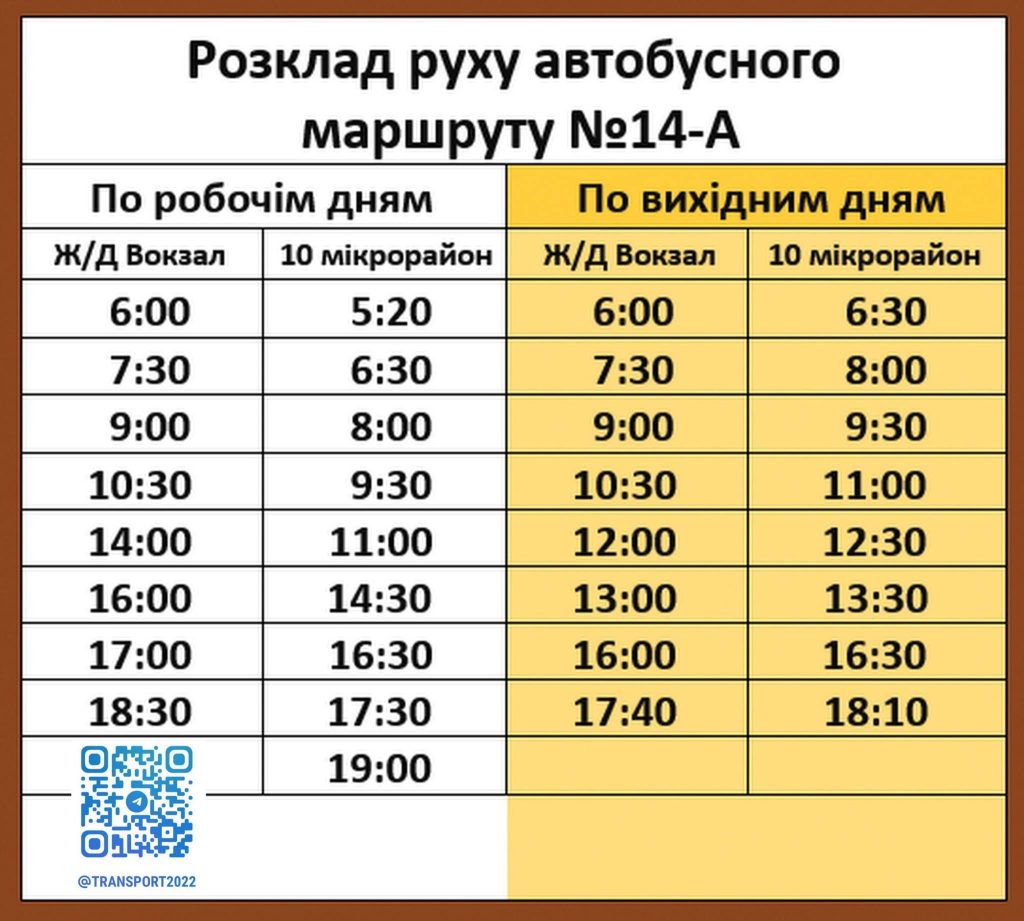 Суспільство Графік руху автобусів №30 та №14-А у Кам’янському 19.03.2026 коментувати КП “Транспорт” надав актуальний розклад руху автобусного маршруту №30 та №14-А по робочим та по вихідним дням. Розклад діє з понеділка по п’ятницю на даний момент актуальний. Відправлення з зупинок. Кількість переглядів: 45 Кам'янське транспорт