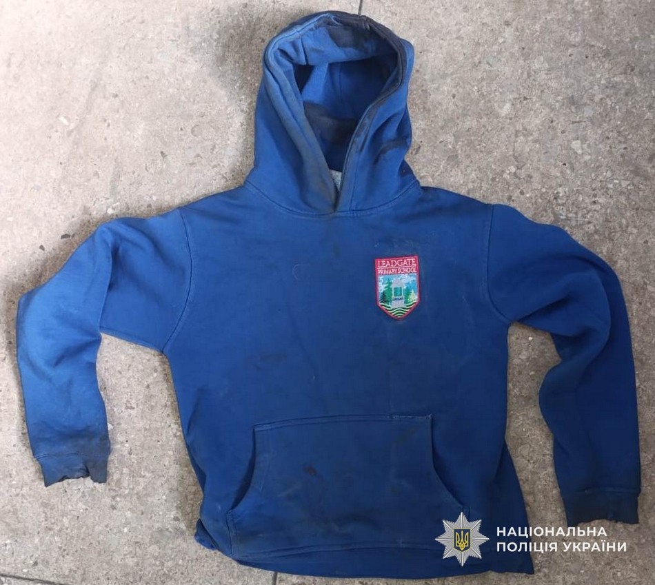 Була одягнена: зимова куртка чорного кольору, кофта з капюшоном синього кольору, кофта з капюшоном на блискавці рожевого кольору, блуза в сіро-рожеву смужку, брюки зелено-сірого кольору.