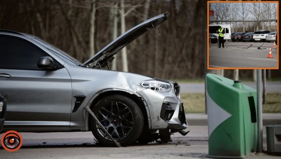 BMW продовжила рух і врізалася у дорожні стовпчики. Машина отримала пошкодження, з-під автівки на дорогу виливається мастило на асфальт. Попередньо, обійшлося без постраждалих.