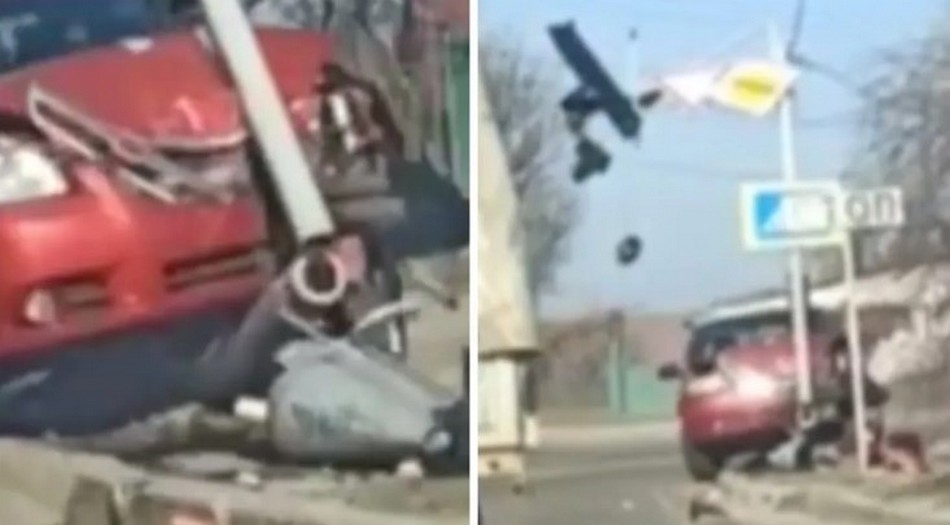 На кадрах видно, що в результаті зіткнення був пошкоджений світлофор. Також дісталося і дорожнім знакам. Про це повідомляє Інформатор з посиланням на соцмережі.