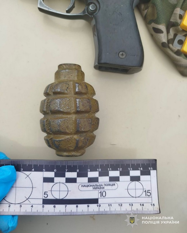 Інцидент стався у березні. Біля одного з будинків поліцейські помітили підозрілого чоловіка. У ході огляду його сумки правоохоронці виявили сигнальний пістолет калібру 9 мм та корпус ручної осколкової оборонної гранати Ф-1 із запалом УЗРГМ (уніфікований запал ручної гранати модернізований).
