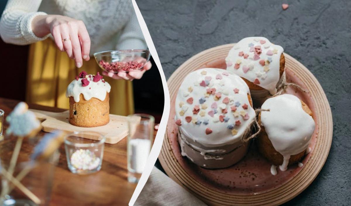 6. Також рецепт домашньої паски передбачає приготування глазурі, і саме час її зробити, поки випічка в духовці. У сухій мисці збийте охолоджені білки до піни, а потім, підсипаючи цукор, продовжуйте збивати їх до стійких піків – вони повинні збільшитися в об’ємі в кілька разів. Додайте в глазур лимонний сік і, коли паски будуть готові, змастіть їх, поки вони гарячі, білосніжною глазур’ю, а потім прикрасьте посипкою.