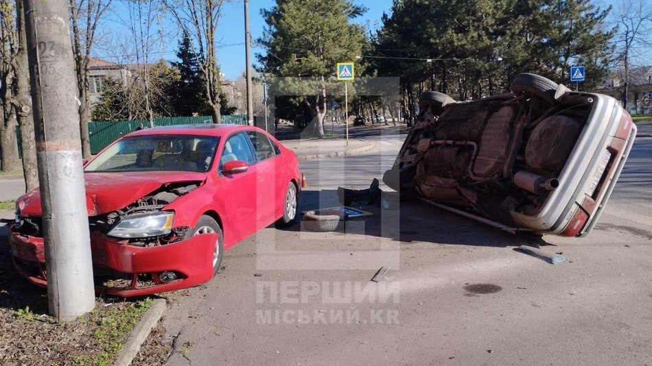 Попередньо, червоний Volkswagen їхав головною та не пропустив автомобіль Mazda, який їхав головною. В результаті автівки зіткнулися, внаслідок чого Mazda перекинулася, а Volkswagen відкинуло на пішохідну зону.