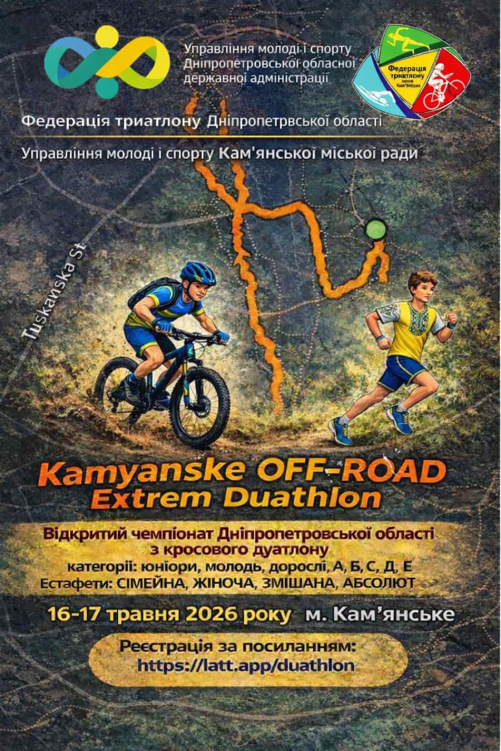 17 травня в Кам’янському пройде відкритий Чемпіонат Дніпропетровської області з триатлону (кросового дуатлону) на спринтерській та суперспринтерській дистанціях «Kamyanske OFF-ROAD Extrem Duathlon». Спортсмени підкорюватимуть три траси перегонів за рівнем складності: