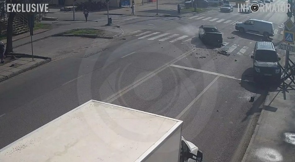 На кадрах видно, що BMW рухався по Калиновій в бік Донецького шосе, а Mitsubishi – по Залюбавської в бік Канівської. Від удару Mitsubishi розвернуло.