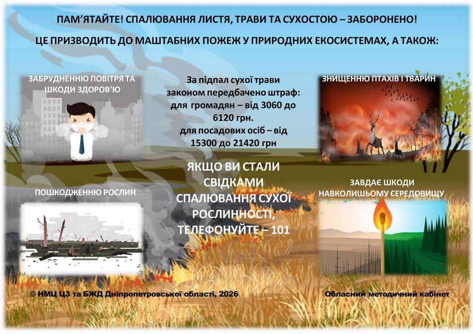 ЯКЩО ВИ СТАЛИ СВІДКАМИ СПАЛЮВАННЯ СУХОЇ РОСЛИННОСТІ, ТЕЛЕФОНУЙТЕ – 101