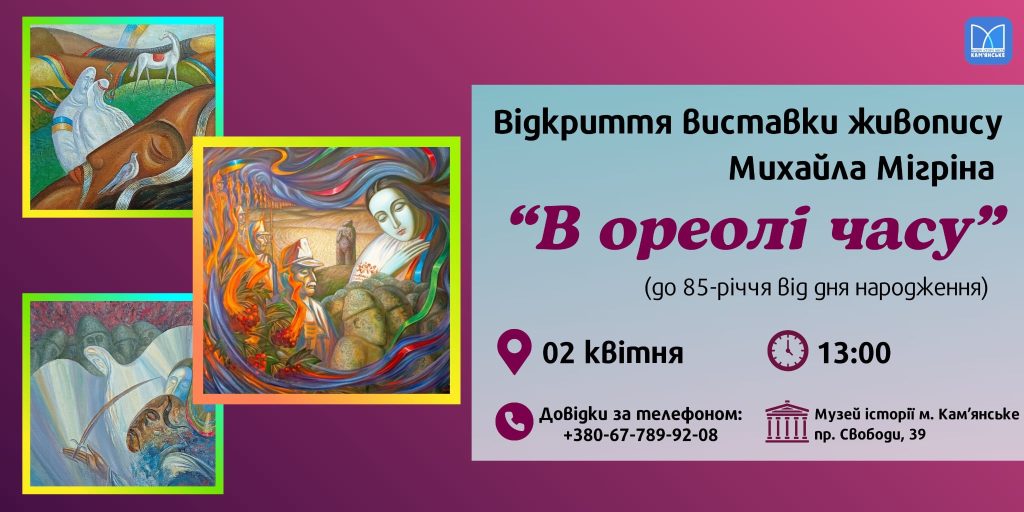 Нещодавно в Музеї історії міста Кам’янське відкрилася персональна виставка Михайла Мігріна під назвою «В ореолі часу», присвячена його 85-річному ювілею. З виставкою можна познайомитись до кінця квітня. І це безперечно, варто зробити, адже ця експозицію, без перебільшення, стала головною мистецькою подією останнього часу.
