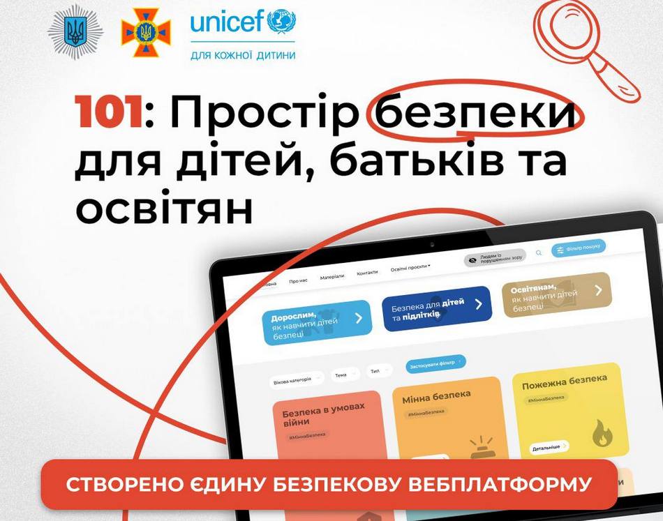 ДСНС разом з  партнерами з UNICEF Ukraine  створили єдину платформу «101: Простір безпеки для дітей, батьків та освітян»: https://bezpeka.dsns.gov.ua/.