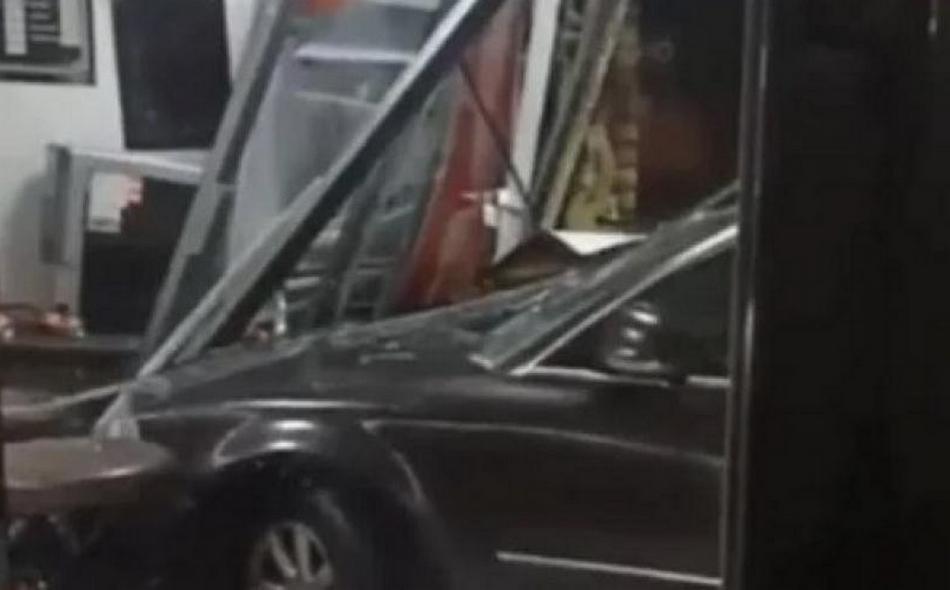 Інцидент стався у вечірній час неподалік від аптеки та пішохідного переходу. На кадрах із місця події видно, що передня частина автомобіля фактично опинилася всередині приміщення, де зазвичай працюють кухарі та готуються страви.