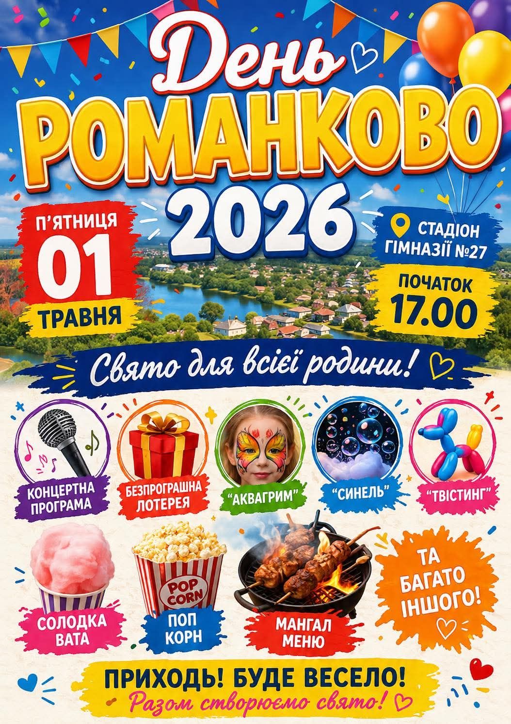 Свято відбудеться на стадіоні біля Гімназії №27. Початок о 17:00.